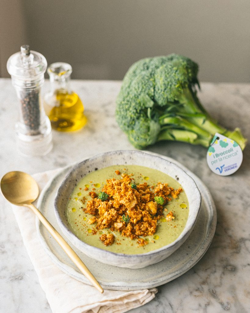 La base è una vellutata di broccoli arricchita dalla dolcezza del finocchio e dalla cremosità della patata, mentre il tofu croccante aggiunge una consistenza diversa e rende il piatto completo.